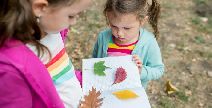 5. Registre as descobertas. Mesmo que a criança ainda não escreva, vocês podem desenhar, colar folhas e anotar o que encontraram. Isso ajuda a valorizar o que foi vivido.